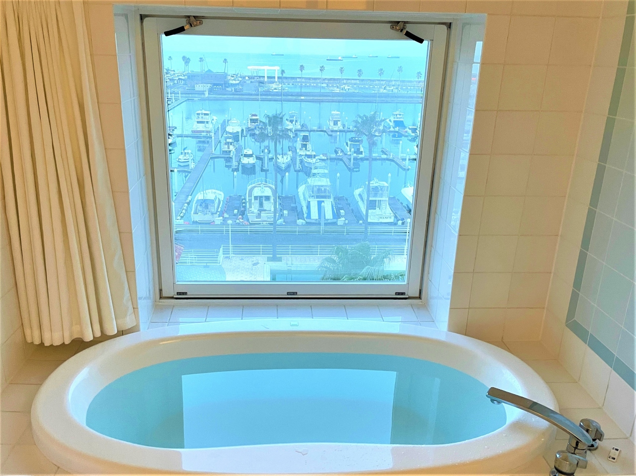 バスルームはヨットハーバーを眺めながら、贅沢な時間を過ごしました。