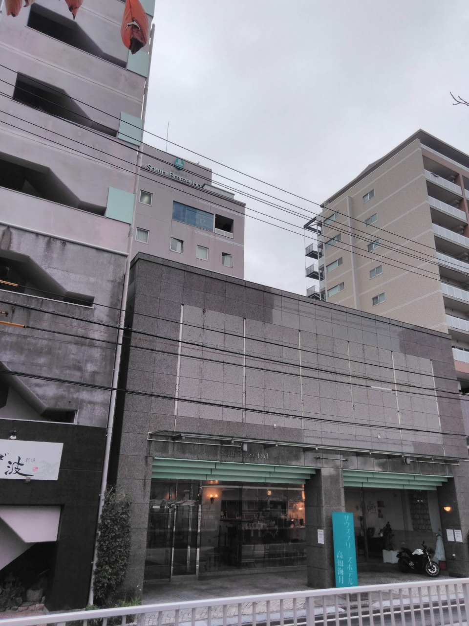 サウスブリーズホテル高知海月は、高知市街地の南東にあって、バス・市電が頻繁に通る大通りに近く、河岸に面していて分かりやすいです。添付写真のように、外見もきれいで、なんと言っても、部屋も快適で、屋上に大浴場があって最高です。