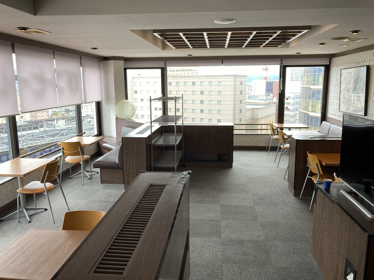 風呂も古いですが、10階からの展望は良く、ここで朝食が取れました。