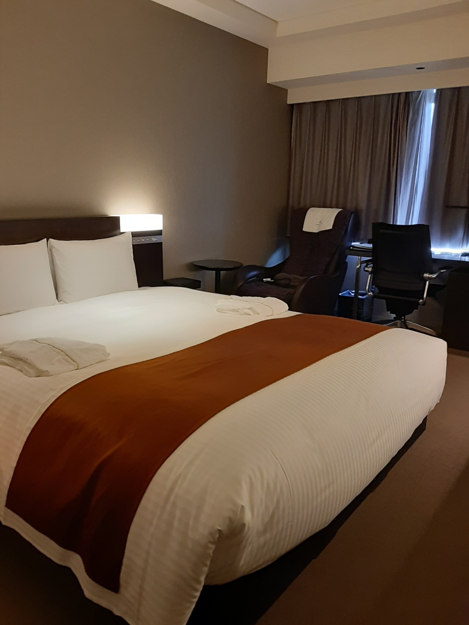 以前ダイワロイネットホテルに宿泊した際に、客室にマッサージチェアがあって、心地よかったので、今回もマッサージチェアの設置されている部屋を選択しました。
