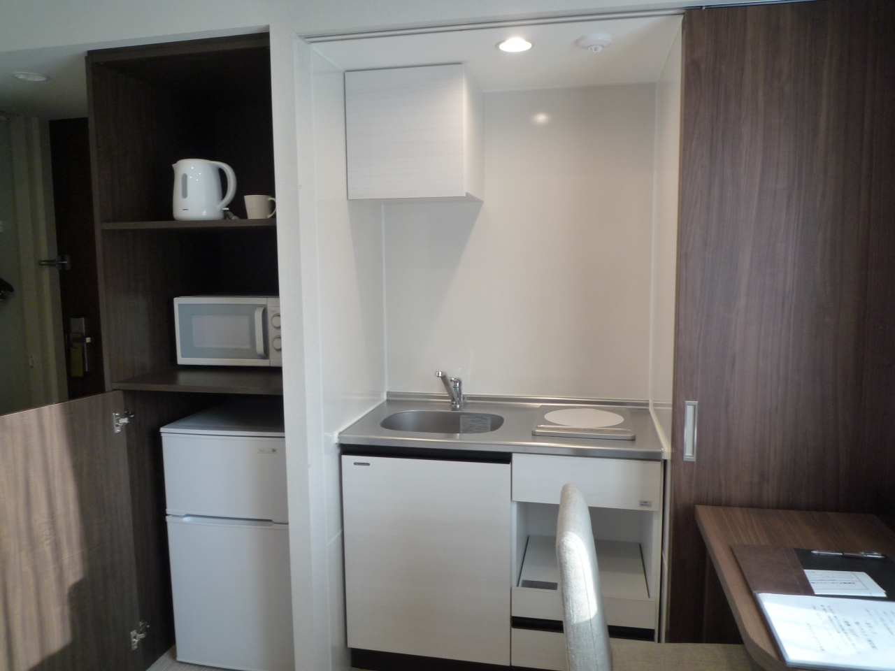 キッチンには一人用炊飯器にIHコンロ・湯沸かしポット・電子レンジ・冷蔵庫も備えてあります(フライパンや食器などは貸して頂けるようですが?)。