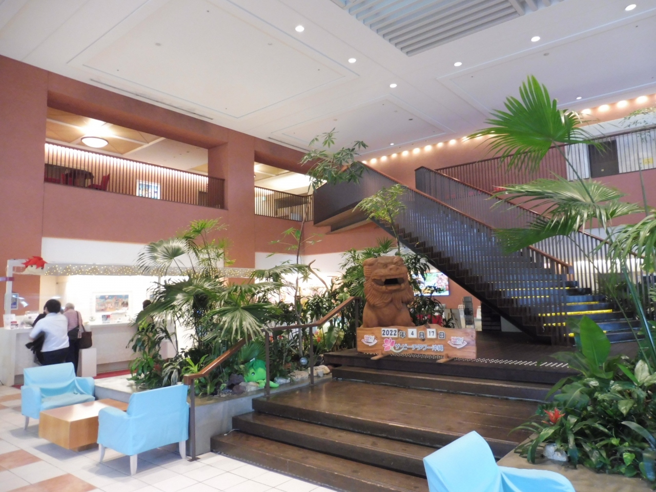 部屋着とスリッパは客室内のみの利用で、1階のレストランや別棟の大浴場(ちゅらーゆ)に行く時は使えません。サンダルがあると便利です。
