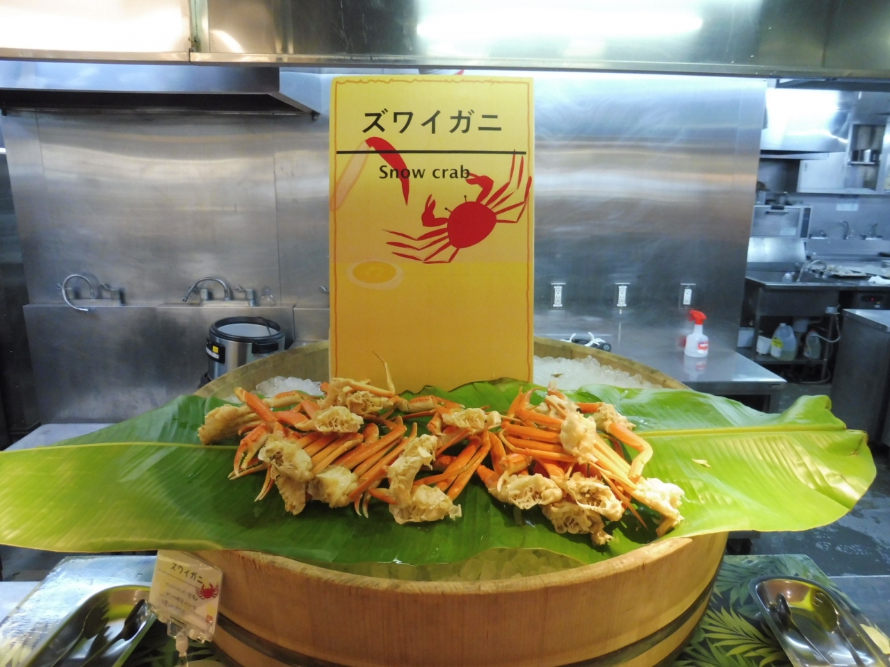カニと焼肉以外のバイキング食材、アルコールを含むドリンク類は共通です。