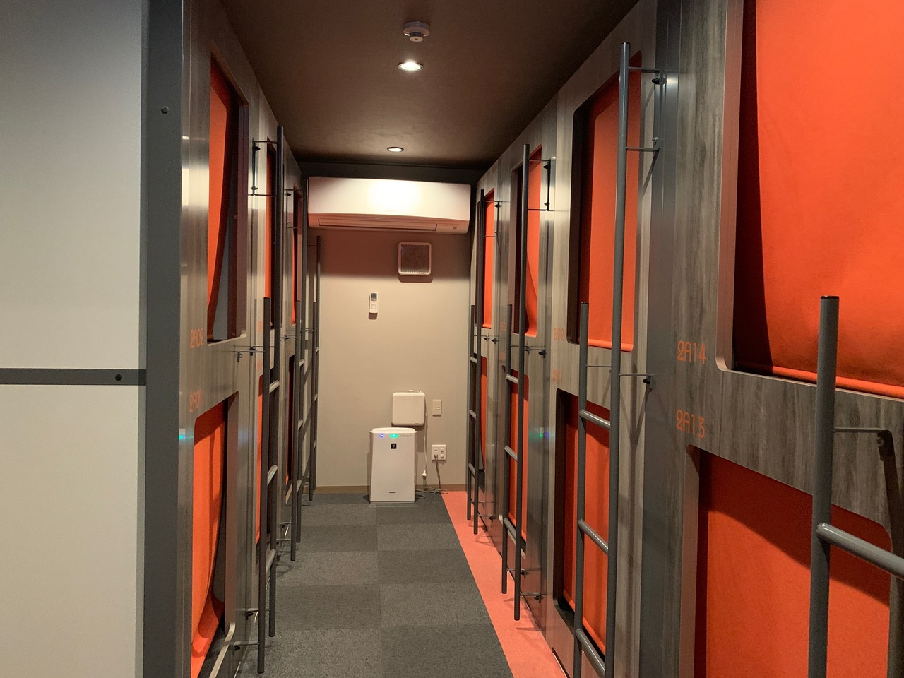 テレビのないシンプルな造りのカプセルホテルで、大浴場はなくシャワーのみです。パジャマ以外のアメニティは一通り揃っているので、早朝発や深夜着の場合には重宝すると思います。男女でフロアが分かれており、女性ルームに入る時には入口で暗証番号を入力する必要があります。