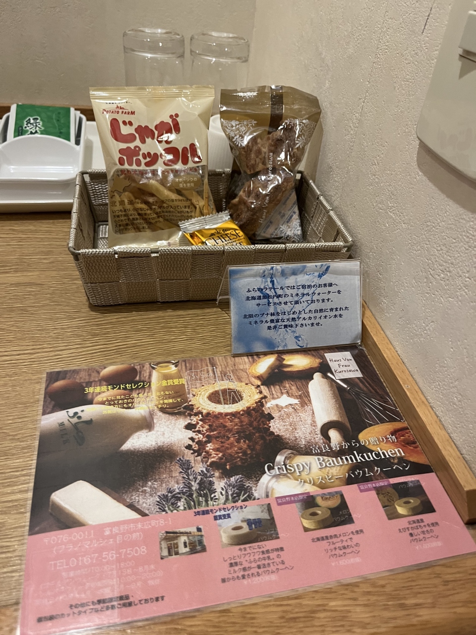 お部屋にお水とお菓子があるのが嬉しいです。
