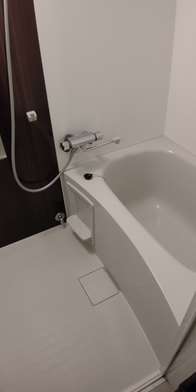 小さいながらも洗い場付きのバスルーム、最近の造りなので、部屋は実用的です。