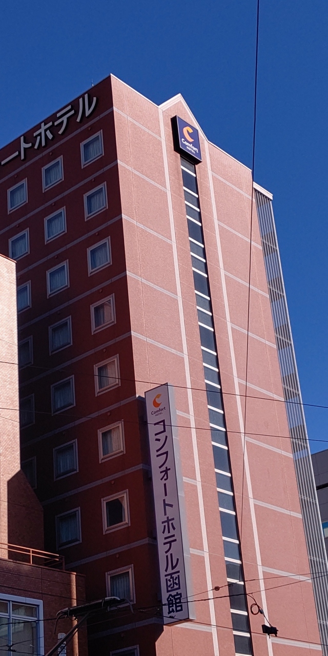 旧国鉄函館駅から市電函館駅前右側に見えます。当然(笑)、何処に行くにも便利なホテルです。