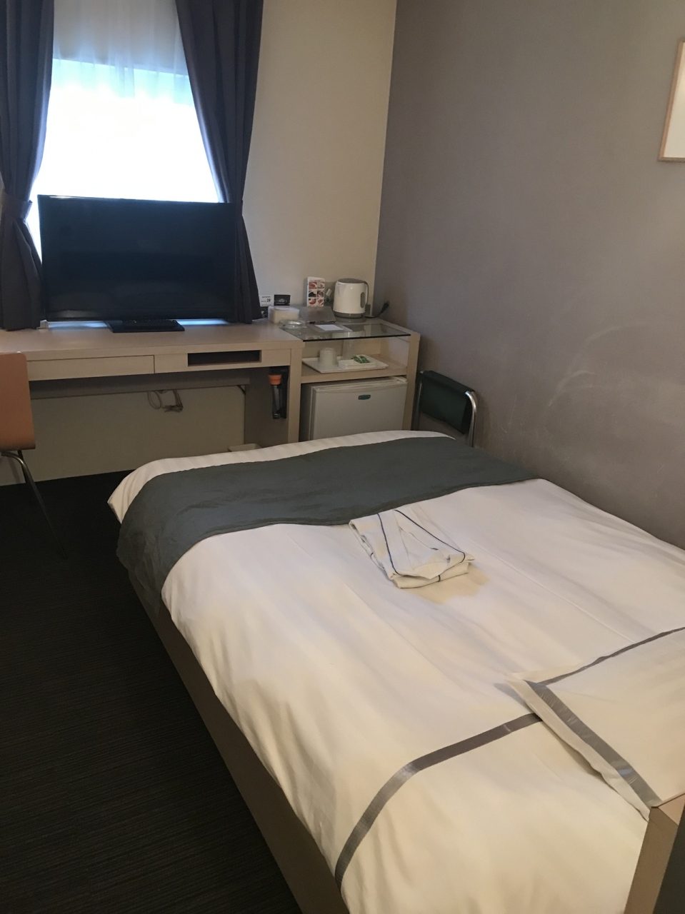 お部屋は、4階シングル15平米(ベッド1台120cm、バスルーム、トイレ、洗面あり)でした。