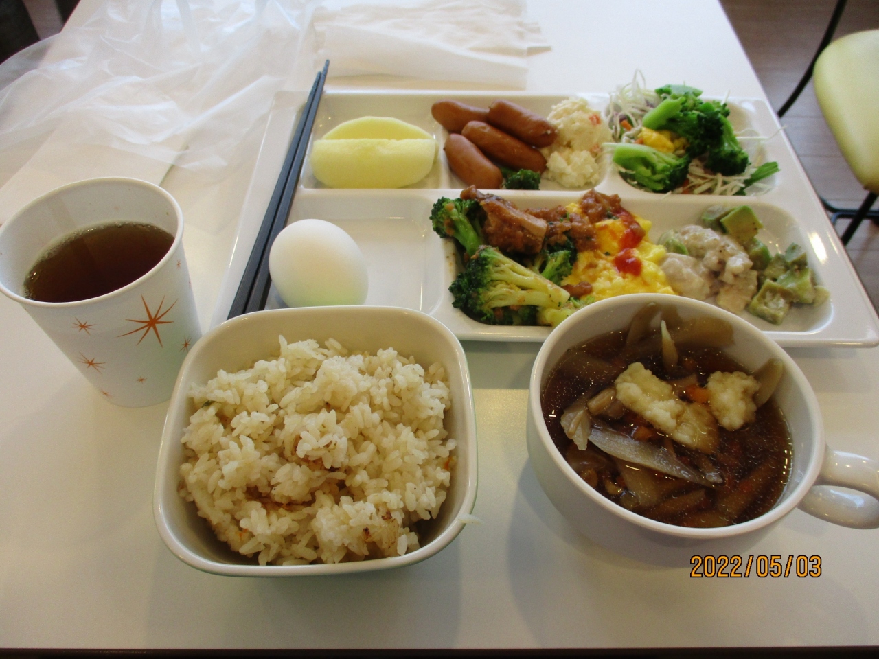 朝食のバイキングでは、きりたんぽが入った比内地鶏のスープがとても美味しかったです。