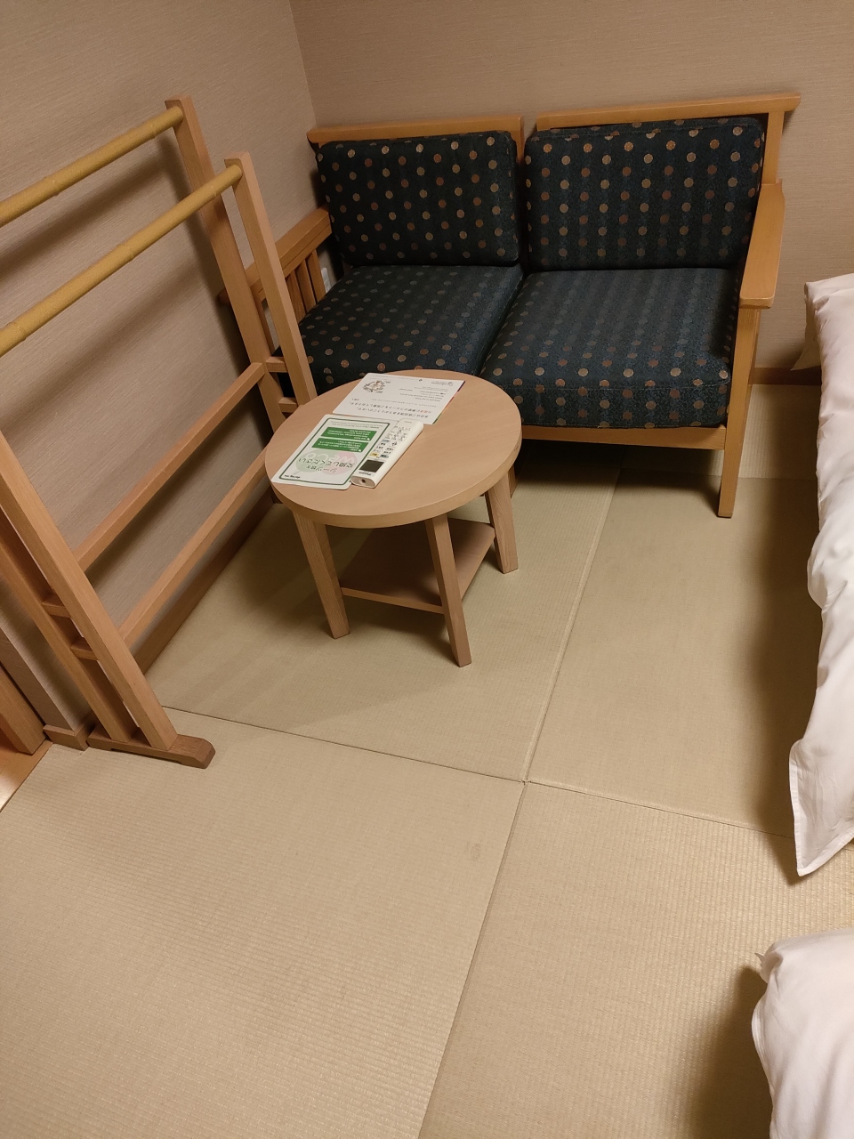 部屋は畳敷きで落ち着きます。ただし机がないため書物やパソコンをする際は小さいテーブルしかないため不便でした。