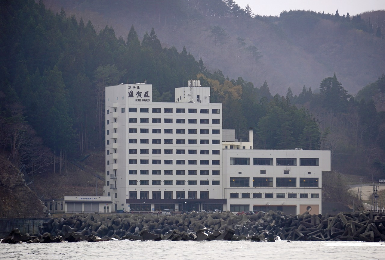 三陸海岸の周遊ツアーで宿泊しました。ホテルに入る前に「北山崎断崖クルーズ」の船鋳物りましたが同じ経営のようです。船の上からもホテルが見えました。ロケーションは素晴らしく小さな港にはこのホテルしか建っていません。羅賀はアイヌ語で坂を意味するだけあって丘の下に建っているイメージです。部屋は全てオーシャンビューで、窓からは太平洋の広大な海が見渡せます。東向きなので夕日は楽しめませんが、朝の日の出時間は晴れていればきれいな眺めを楽しめます。又5時頃に「さんふらわあ」のフェリーが苫小牧に向かうのを見ることが出来ました。車道には歩道が付いているので、ひらなめ海岸やその先の明戸海岸の美しい砂浜辺りまでは歩くことが出来ます。ツアーの夕食は会席料理のセットでしたが、地産の食材が使われていて良かったです。最後にいちご煮まで出てきてビックリです。ただ、朝ごはんはどこにでもある料理でちょっと残念です。たのはた牛乳とヨーグルトが美味しかったくらいでした。