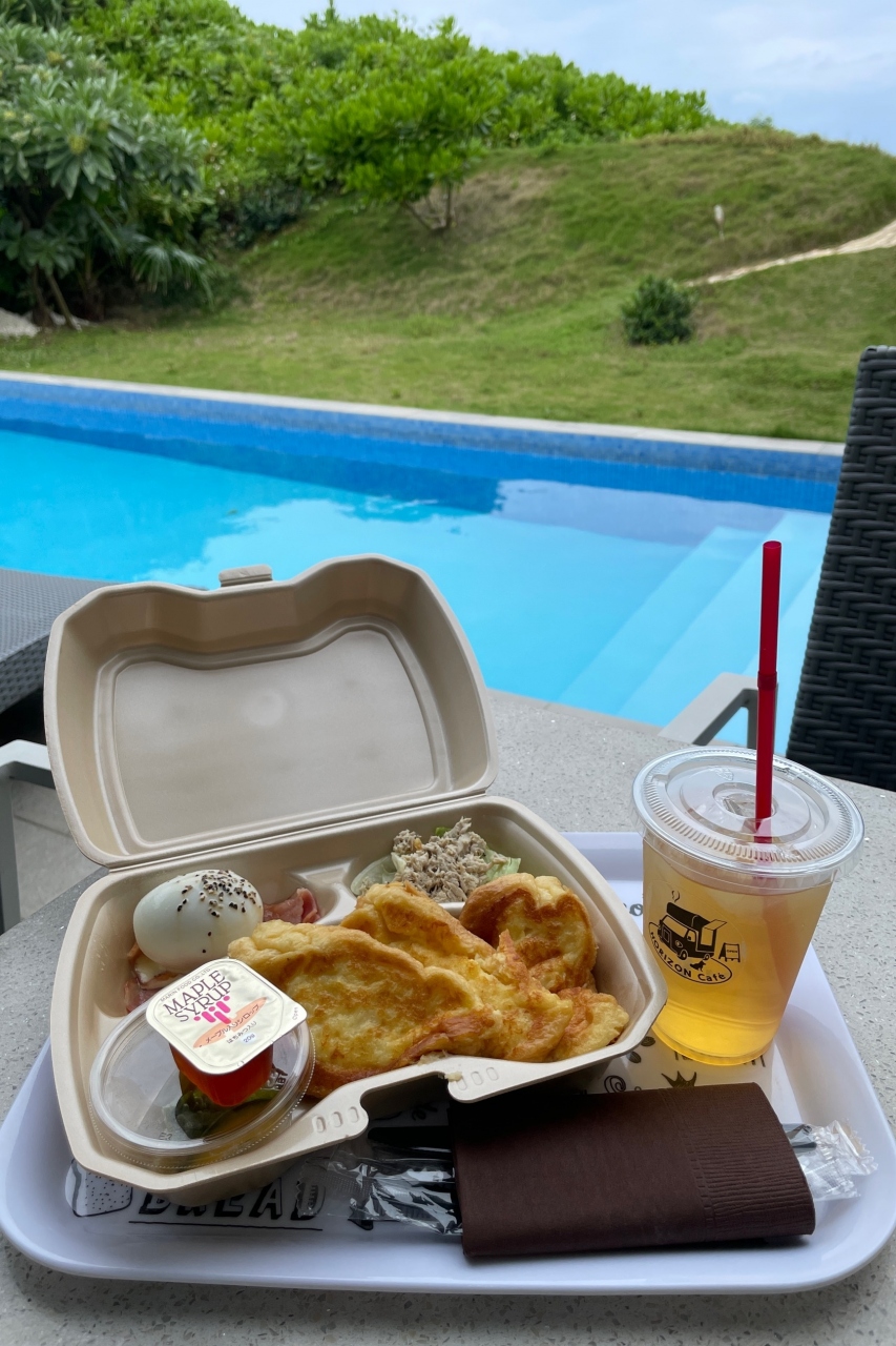 レストランはありませんが毎朝ホライズンカフェのキッチンカーが広場に来て朝食を提供してくれます。