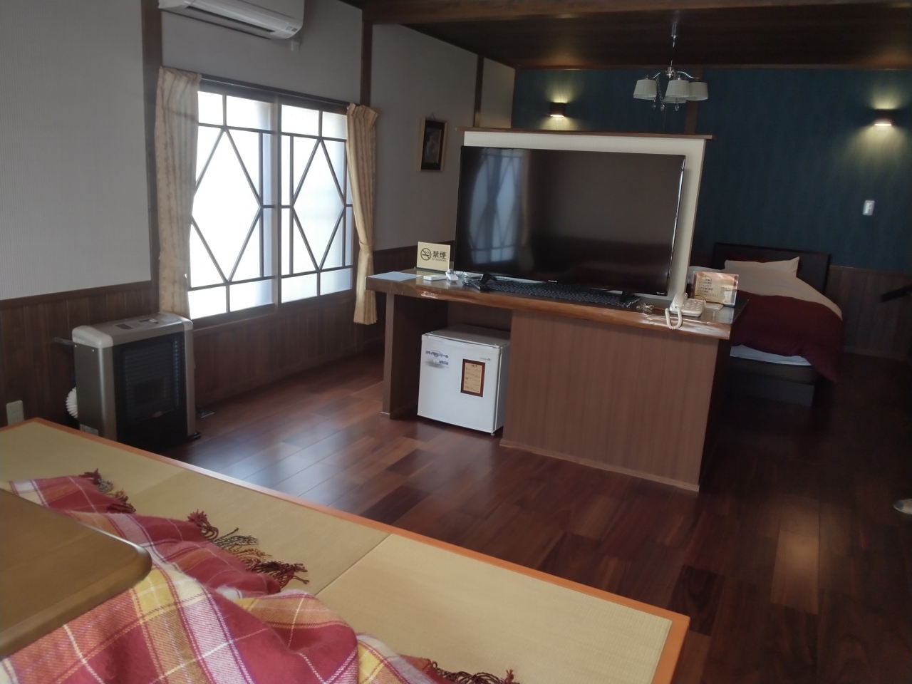こちらも外見は古いが、泊まった部屋は3年前にリニューアルした5部屋のうちの1室で、ツインベットと掘りごたつのある和洋室のスタイルだ。