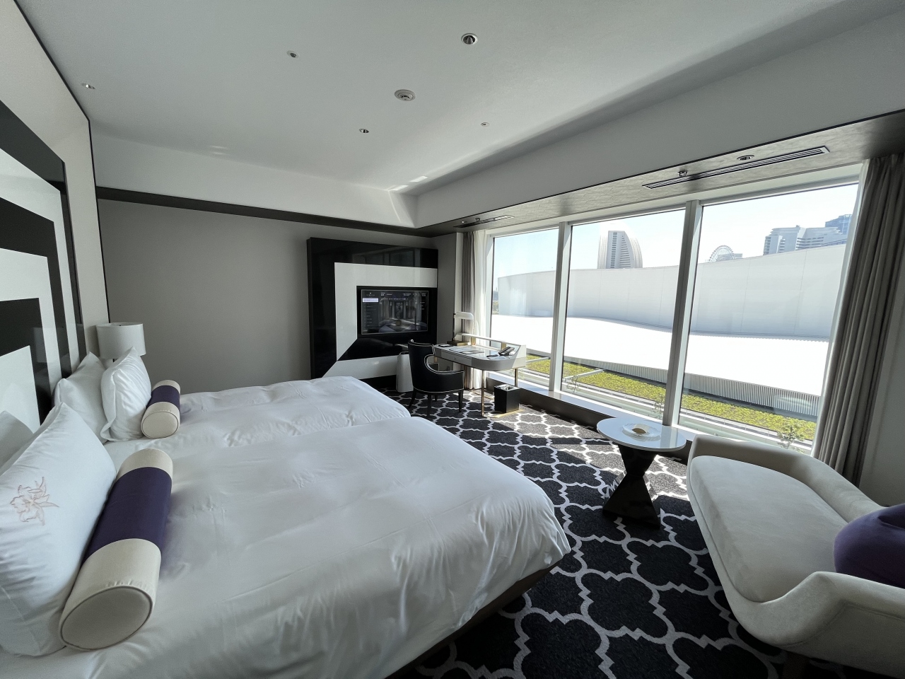 グランドツインに宿泊しました。部屋は充分に広くとても明るい雰囲気でした。バスルームはシャワーブースとバスタブが隣り合っていて使いやすかったです。アメニティも洗練されたもので良かったです。眺望は低層階だったので、さほどではありませんでしたが、横浜ベイブリッジが見えました。