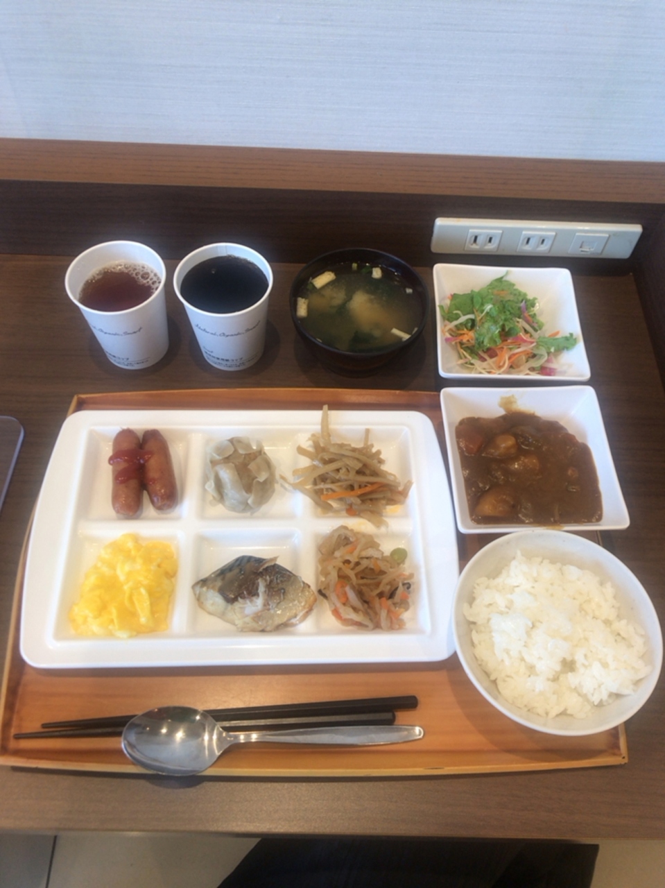 朝食は三原ならではのたこカレーもあり、メニューも豊富で良かったです。