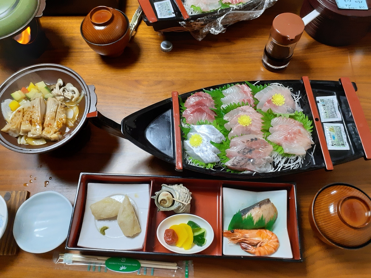 千葉県民割が使えたので行ってきました。千葉は何回かはいったことがありますが、このところご無沙汰でした。車がないので交通が便利な所で、景色が良くて、料理がおいしくてとなるとなかなか選べません。部屋からもお風呂からも海が見えて、しかも高い所から眺めるのでとても気持ちよかったです。夕食は船盛が一人一個ついて、多すぎて食べるのがたいへんでした。しかも珍しい太刀魚のお刺身なんかもありました。バイキングの朝食も種類も味もよかったです。素泊まりの人のためにはお弁当も良心的な値段で売っていました。