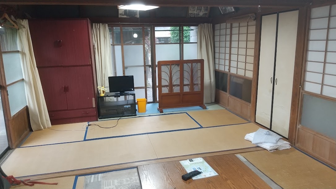 広い部屋に一人で泊まりました。民宿なので布団は自分でひきます。