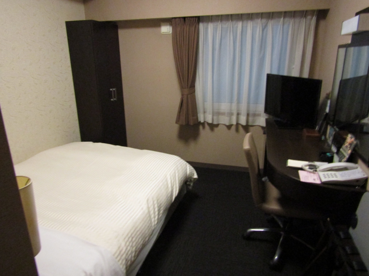 部屋の造りは一般的なビジネスホテルと同じですが、広さがやや広いうえ、ズボンプレッサーと空気清浄機もありました。