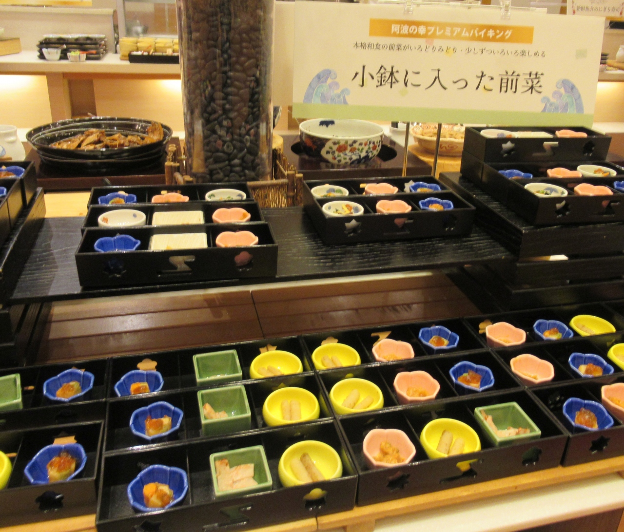 大塚国際美術館から車で2~3分と近く、ホテルの前は海です。朝食・夕食ともにバイキングです。バイキング夕食は、たこがいっぱいと大きな貝やワカメのしゃぶしゃぶなどもあって品数豊富です。お刺身や揚げたての天ぷらがおいしかったです。天空の湯(大浴場)があります。露天風呂は螺旋階段を上がって行きます。