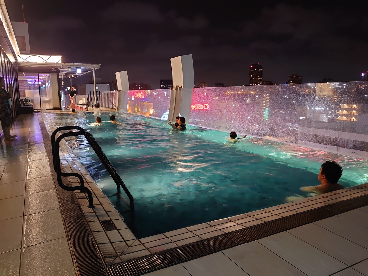 最上階のシースループールは21時に利用しましたが、若者が多めでした