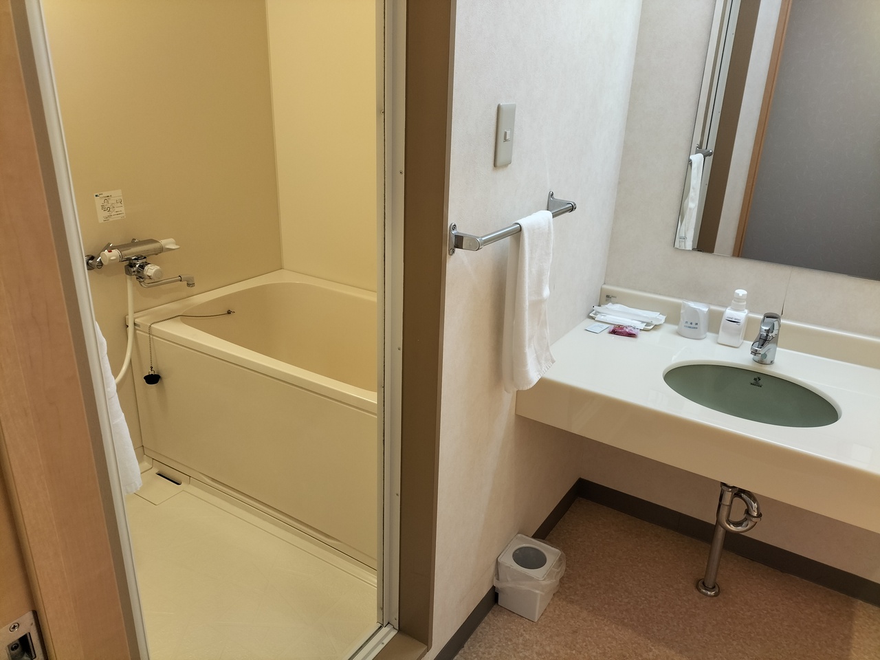 本館と、いったん外に出なければなりませんが民家を挟んで別館があります。今回は別館宿泊で広めの部屋はシンプルかつ清潔でした。またバストイレは別で、余裕のある作りでした。空調が集中管理なので、季節によっては厳しいかなと思います。