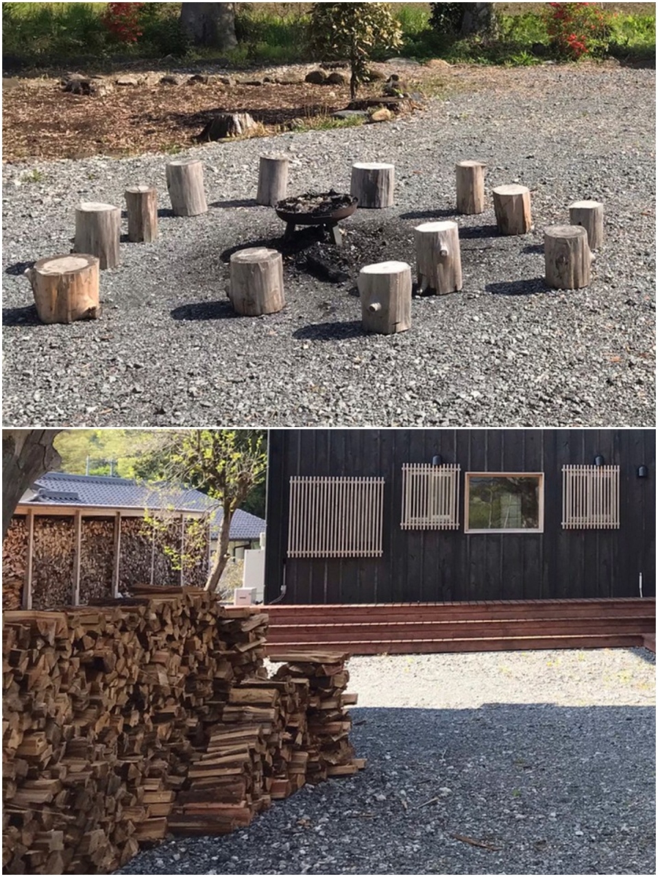 敷地も広いため、キャンプファイヤーも楽しめます。また大きな屋根付きの広いデッキがあるので、雨でもBBQを楽しめるのも良いですね。