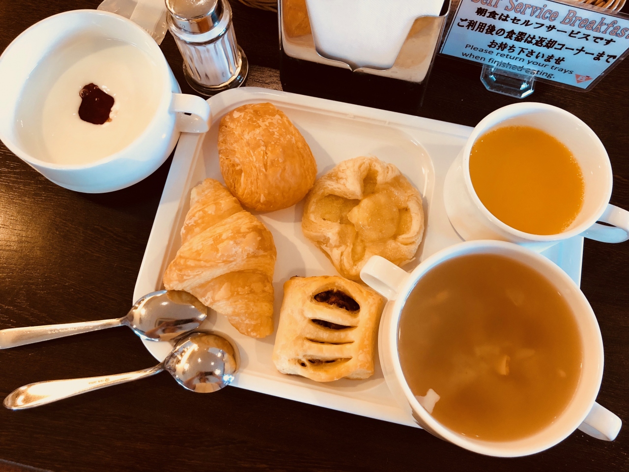 プラン関係なく朝食付き。宿泊者全員が1階で朝食をいただくことができます。パンやスープ、ヨーグルトと種類は豊富。ただしタイミングを間違えると大混雑するので注意。