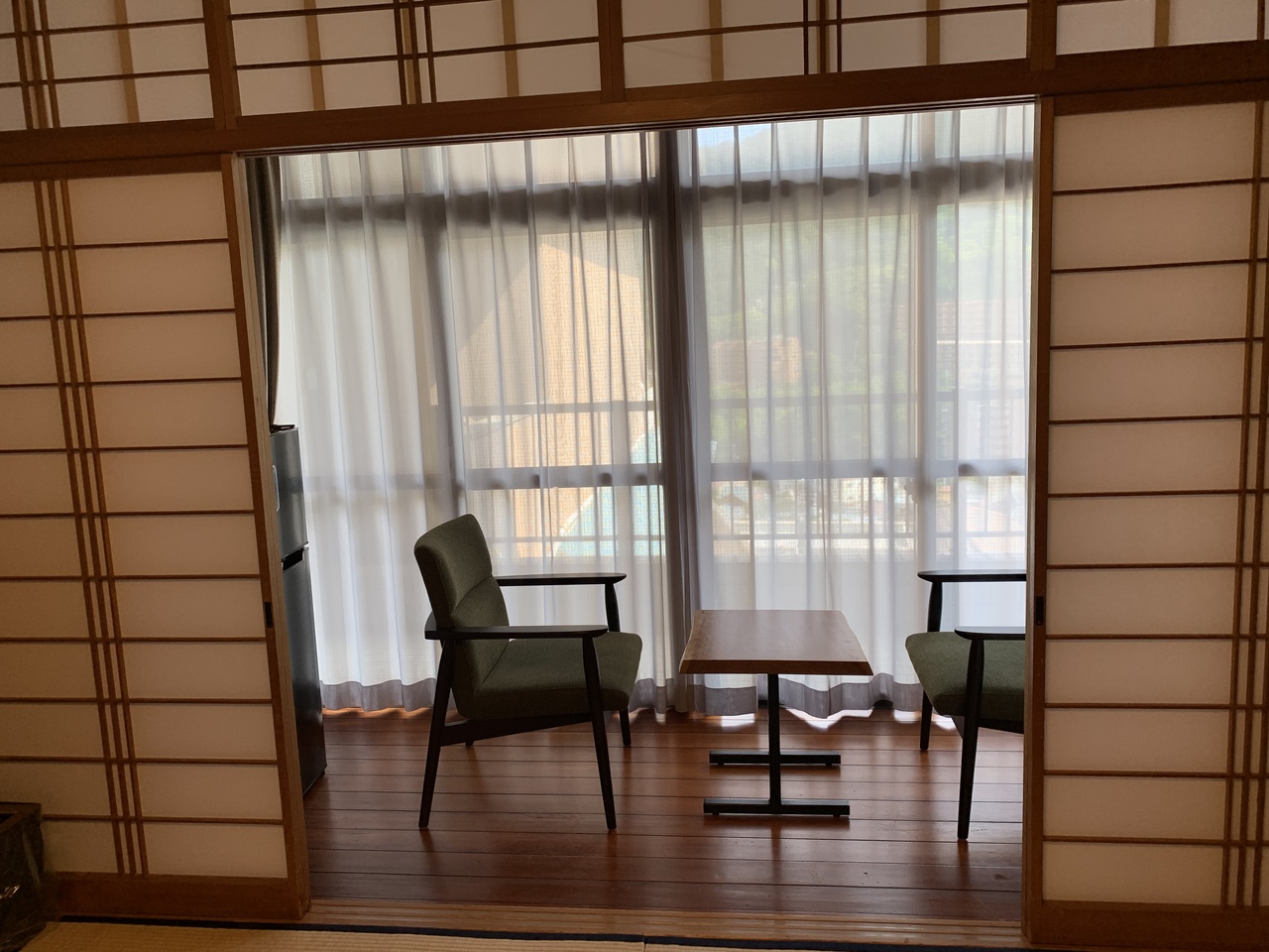 古民家の建物がとっても雰囲気があって、きれいな宿でした。昔からある建物で、今は1年前に今の宿に変わったそう。ウェルカムドリンクとお菓子でお迎えされ、浴衣を選んでお部屋へ。館内には、ライブラリーカフェがあり、日本庭園を見ながらゆっくり過ごせます。大浴場も露天風呂があり、満足でした。