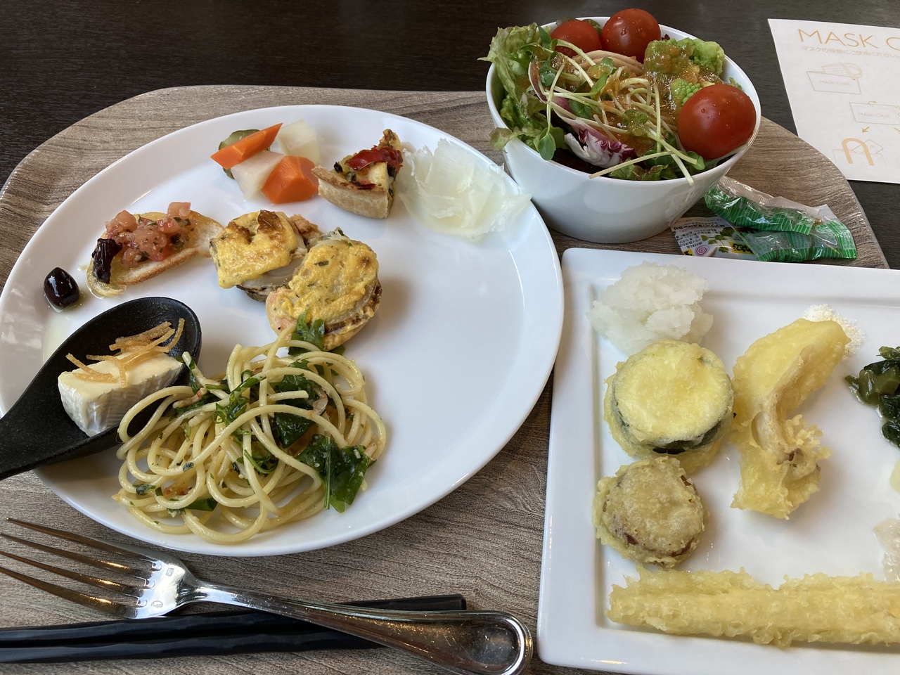 夕食はブッフェで、ローストビーフやパスタなどのイタリアンに天ぷらなどの和食もありました。