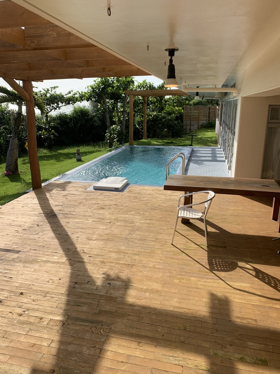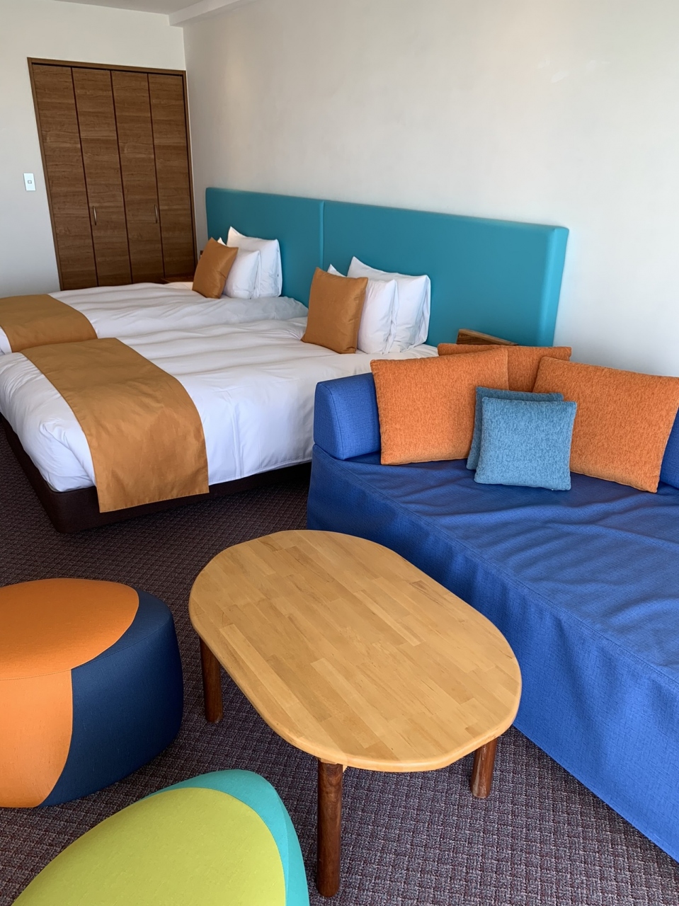 読谷村の都屋漁港のすぐ近くにあります。無料駐車場あり。チェックインの際にはウェルカムドリンクをいただきながら説明を受けました。