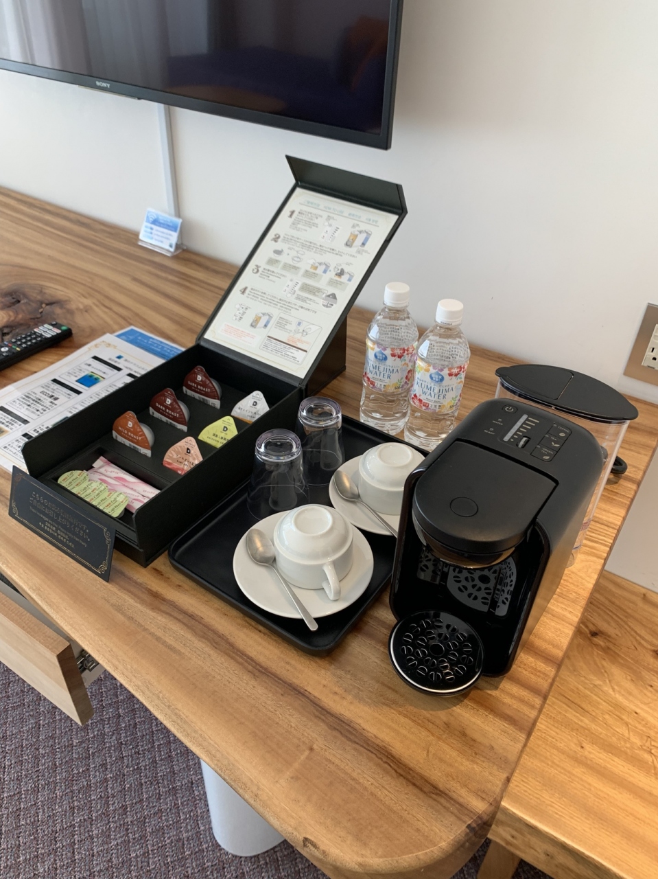 部屋はエレベーターで上がった3階にあるツインでした。室内はゆったりとした広さがあり快適に過ごせました。テレビ、冷蔵庫、電気ポット、ドライヤー、コーヒーマシーン、歯ブラシなどのアメニティ、部屋着もあり、wifi環境も良かったです。
