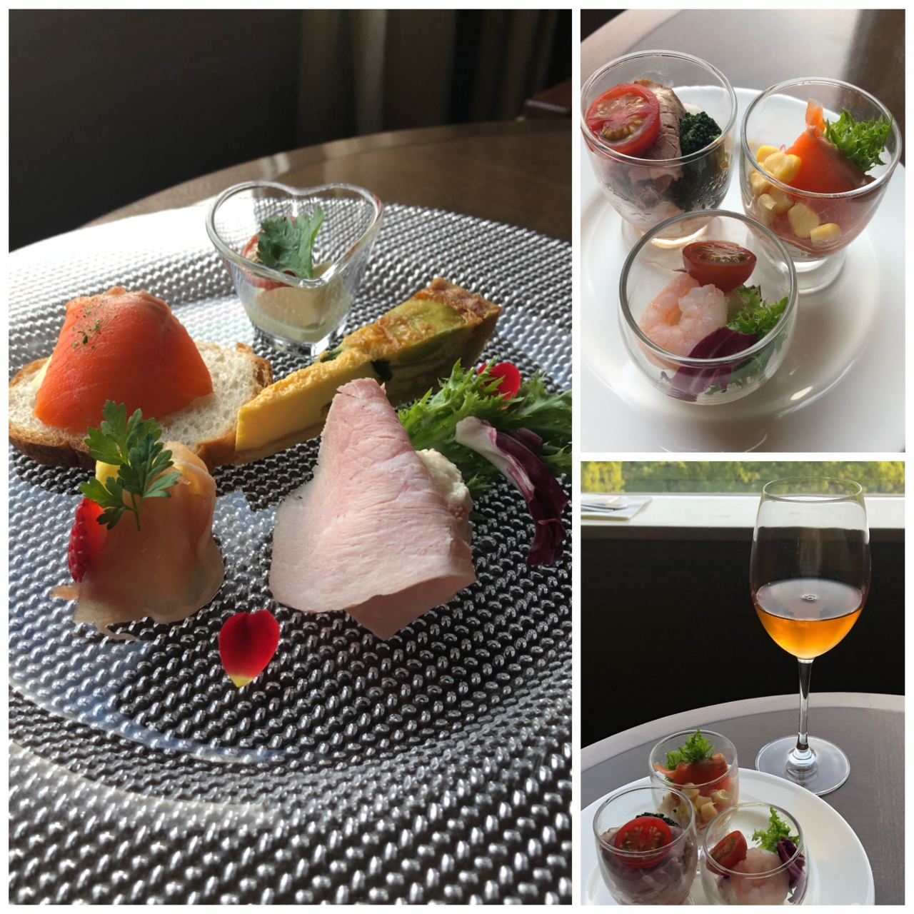 カクテルサービスは、お料理はグラスに入ったオードブル5種とイカ天などのスナック。プレートが提供される分、種類は少なめ。アルコール類は充実していました。