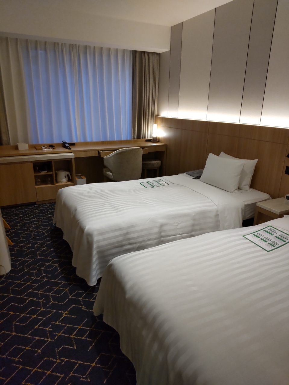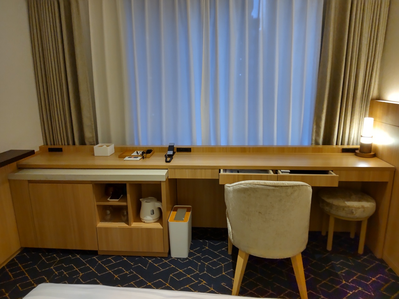 外観からして近隣のビジネスホテルより高級感があり、また開業してから4,5年足らずの新しめのホテルということで一度宿泊してみたいと気になっていたのですが、その分料金もやや割高で機会を伺っていたところ、今回どうみん割が使えたので宿泊しました。広めのツインルームでしたが、やはり部屋も新しさを感じる綺麗さで、バスルームも広くバスタブもゆったりでした。個人的にはものが沢山並べられる横幅の広いデスクが一番ポイントが高かったです。外の音もほとんど気にならずゆっくり休めて、とても満足出来ました。