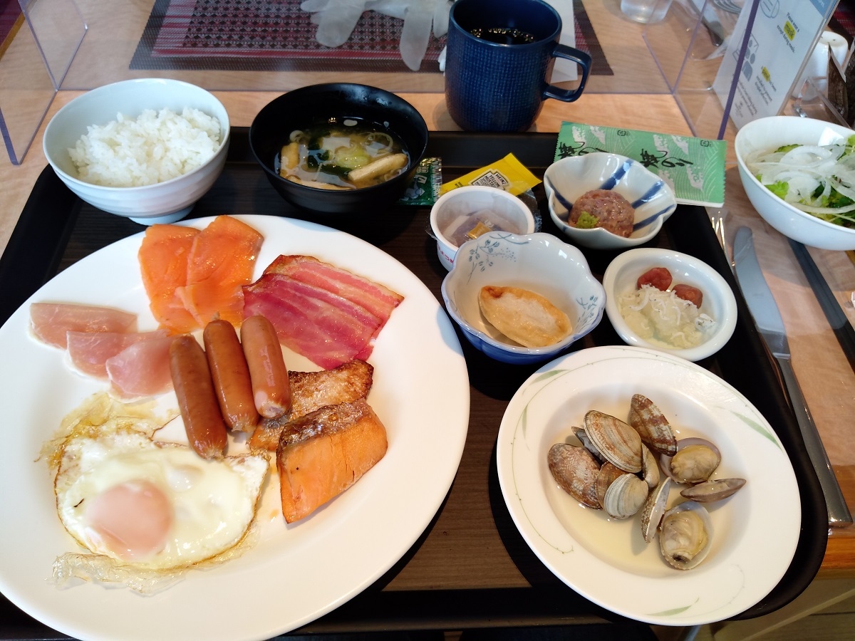 そして翌朝のお楽しみは朝食バイキング。鯵なめろうにスモークサーモン、アサリの酒蒸し、しらすおろし....えーっと、朝からお酒頼んでいいですか?的なメニューにノックアウト。食べ過ぎて、成田空港で友人と会い昼食の予定がメチャクチャになってしまったのは言うまでもない。