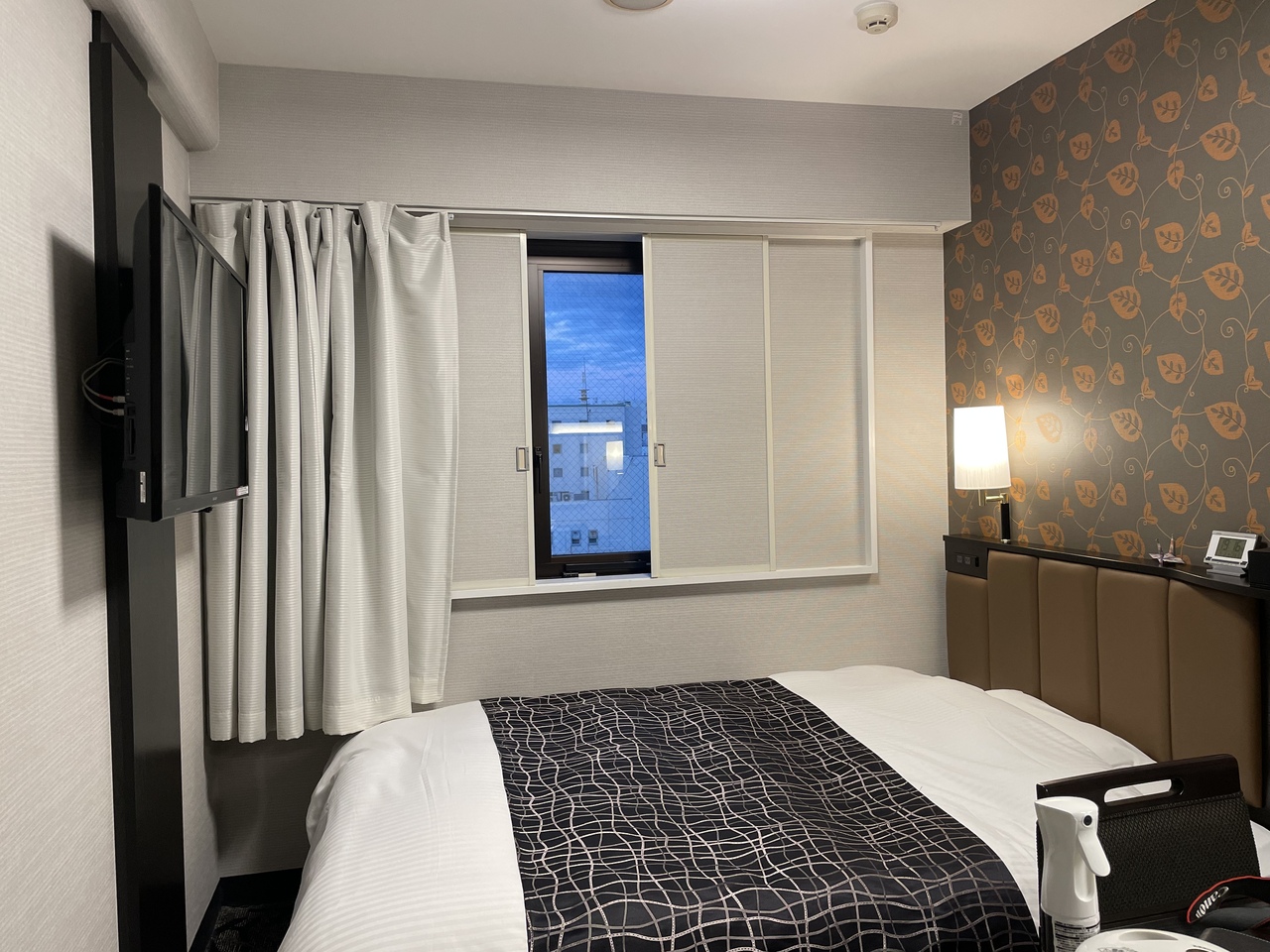 青森駅から徒歩5分ほどのアポホテルのチェーンホテルです。駅から近く立地は便利です。部屋は広くありませんが、一通りそろっています。フロント対応は丁寧で、WEB予約の特典でアパ社長カレーをいただきました。