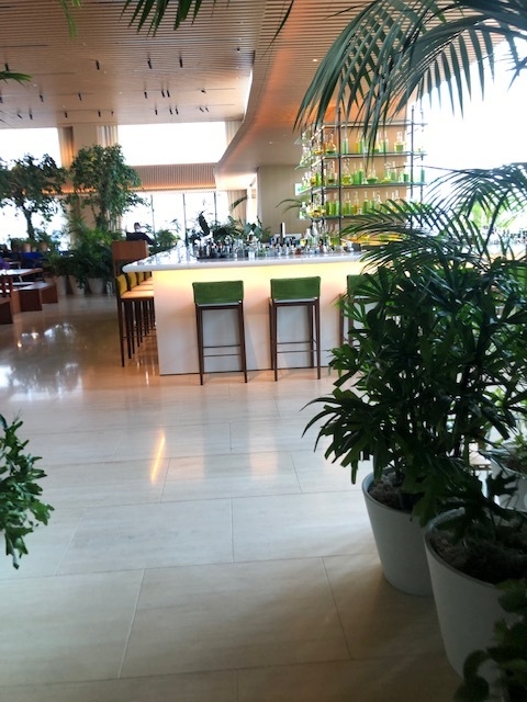 ラウンジはあらゆる場所にグリーンが配されていて、
