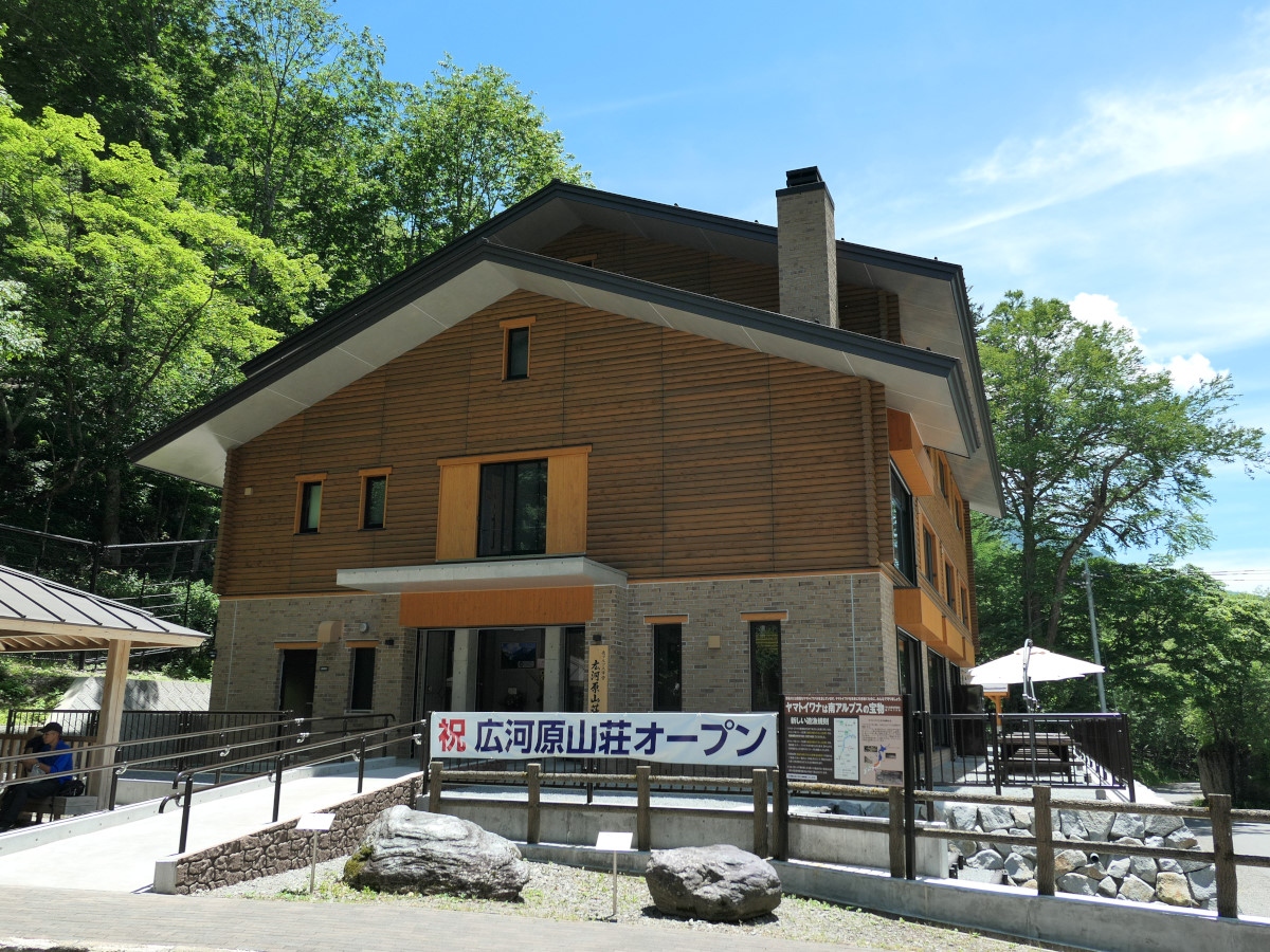 その広河原のインフォメーションセンターの正面、バス停の横に今年オープンしたのが「広河原山荘」です。