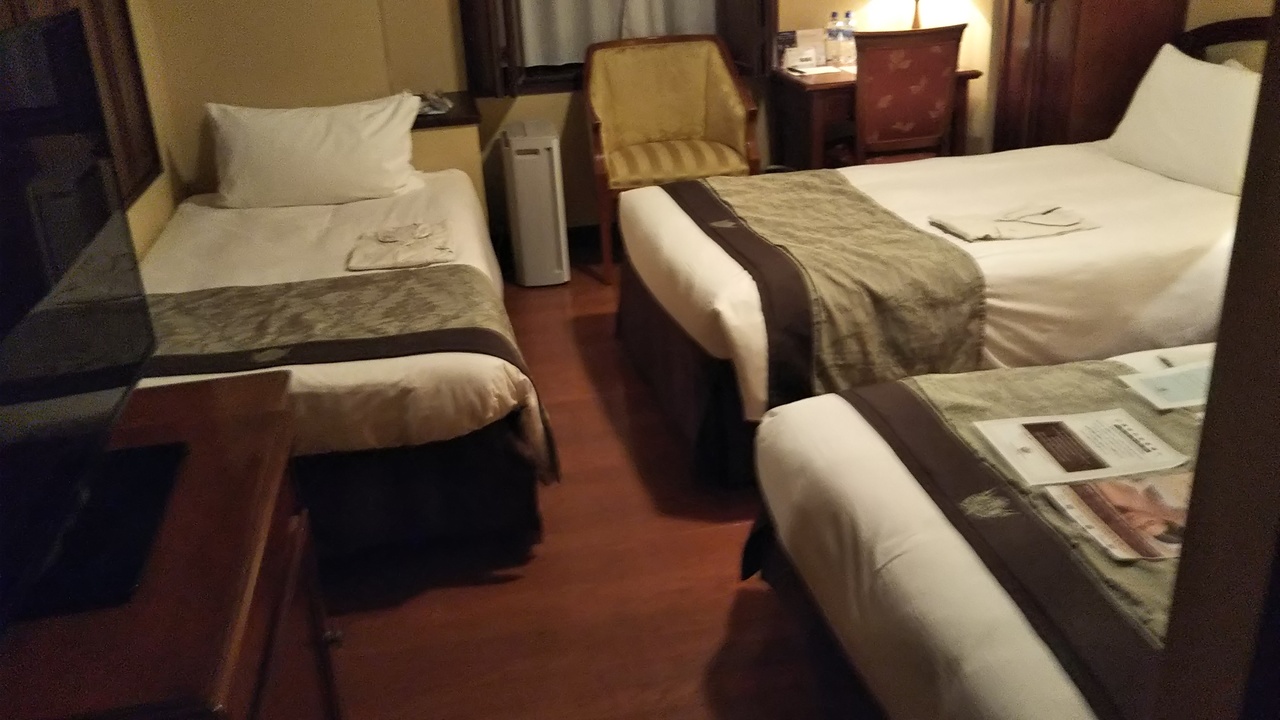 部屋は、シングルが埋まっているとのことで、トリプルの部屋になったのですが、シングルの部屋の広さそのままでベッドが三つでしたので少し窮屈に感じました。