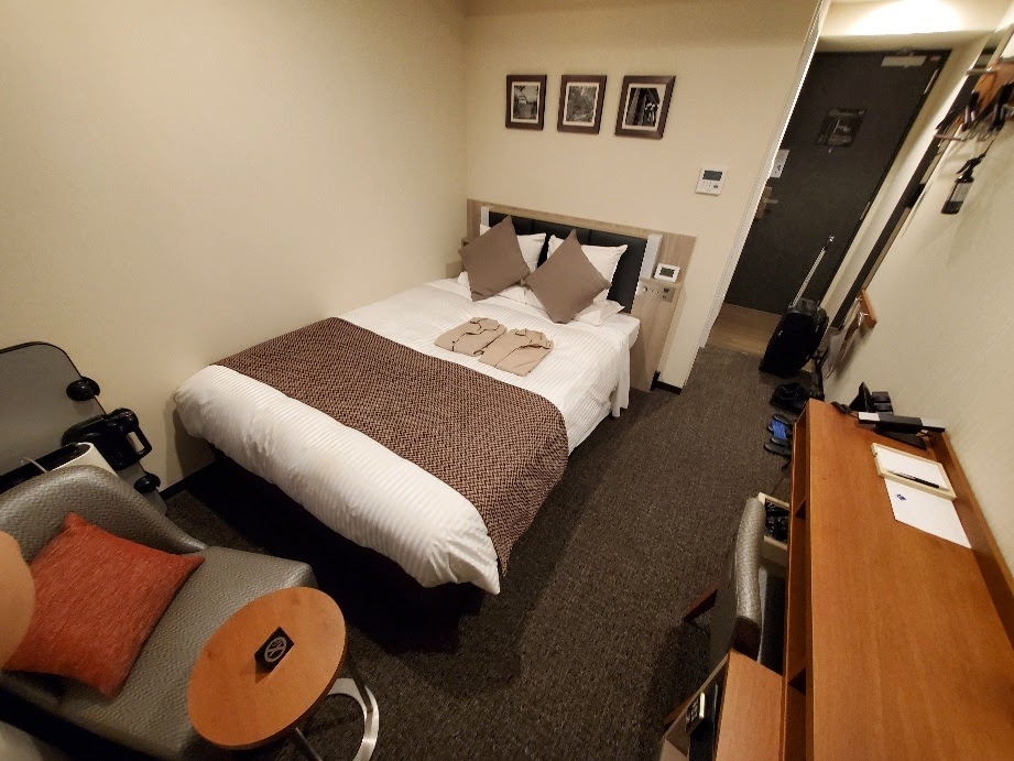 部屋自体は、一般的なビジネスホテルですが、この値段(素泊まり4,600円)でこの規模!?と、なにも文句のつけようがありません。某有名ビジホテよりも大きい部屋です。さらに、アメニティも必要な分だけフロント横から貰うエコな取り組み♪