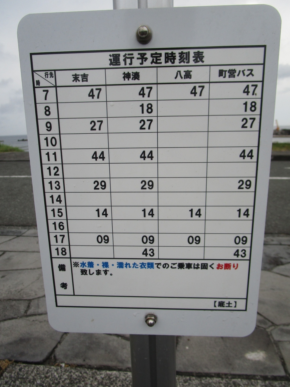町営バスの停留所がすぐ前にあり、1日8便ほどですが、比較的時間に正確に運行されていたので、滞在中は重宝しました。