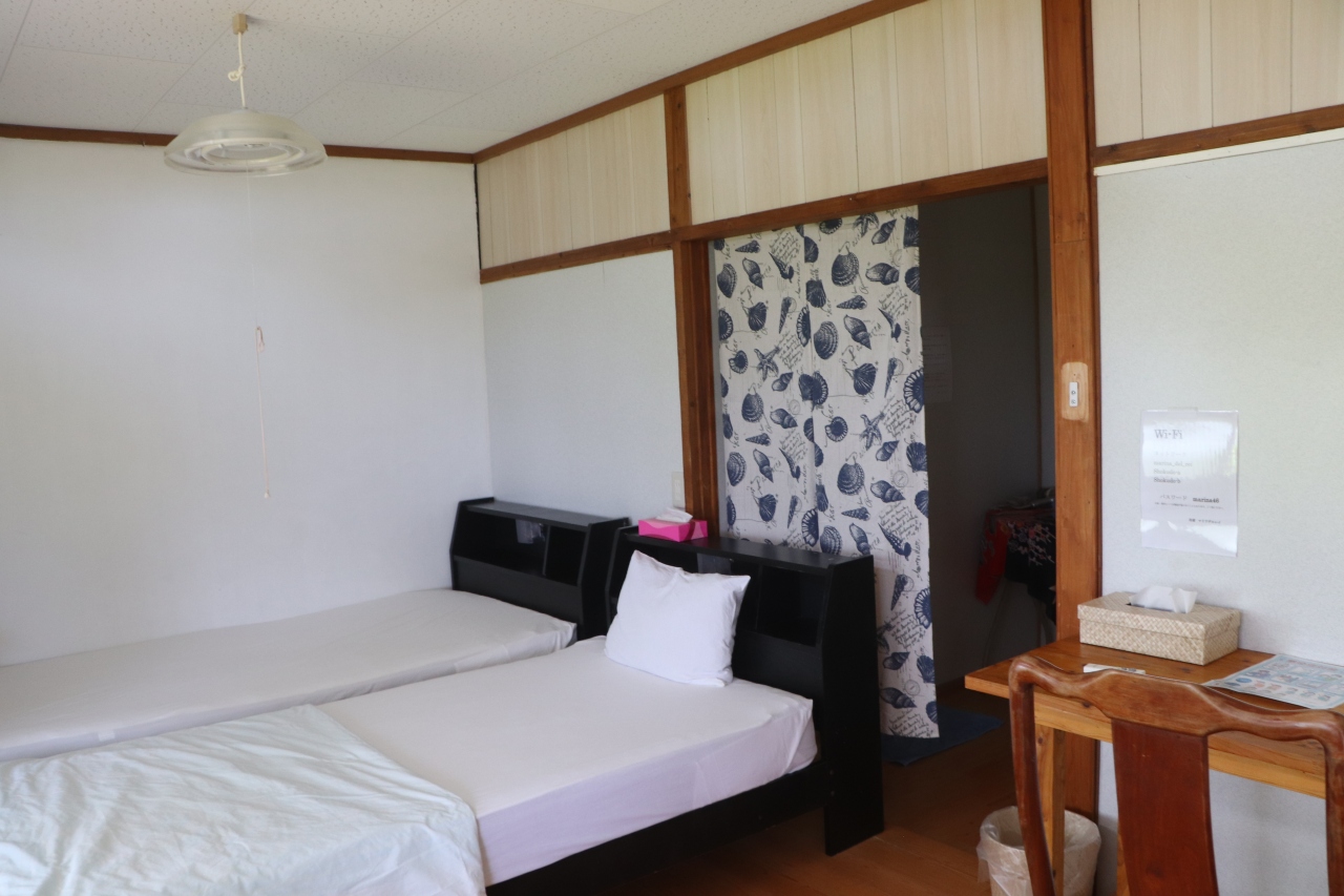 赤崎にあるマリナデルレイはレンタカー利用の旅の方向けの宿で、共同キッチンや大きな冷蔵庫もあるので、マリンアクティビティを楽しむ家族旅におすすめの宿です