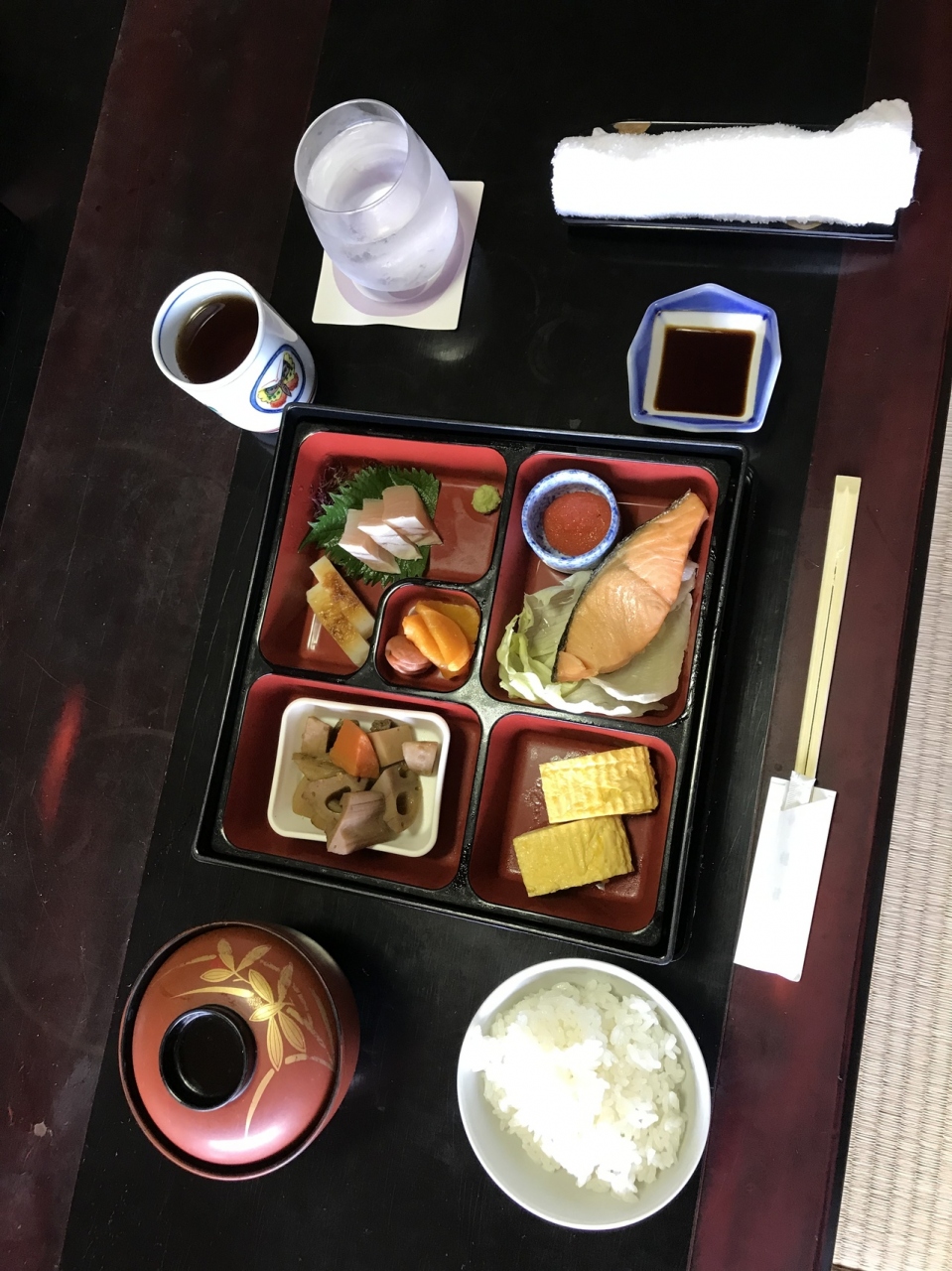 夕食はお部屋でお弁当スタイルでした。