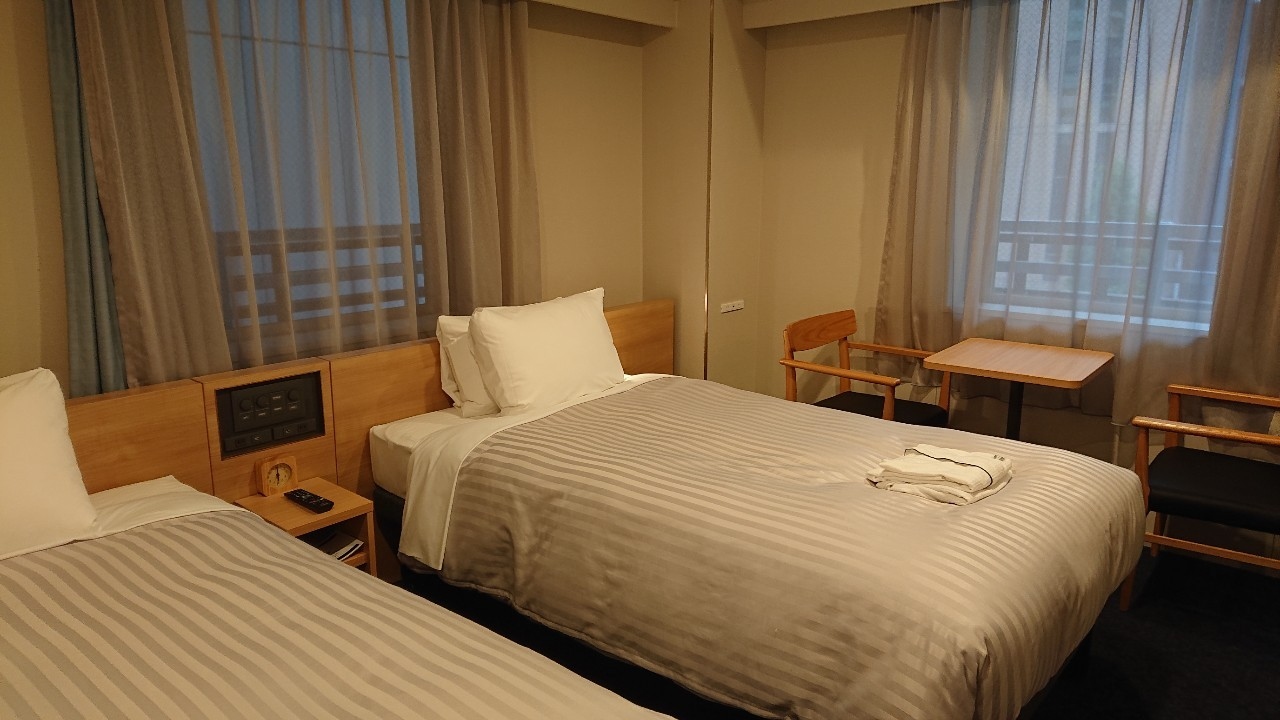 神奈川の相鉄のビジネスホテルチェーンのホテルで、まだ、新しくキレイです。ツアーで利用、スタンダードなツインは狭い感じなので、ホテルに直接電話して、お金はかかるがアップグレードしました。チェックアウトは、有料になりますが、遅らせることができます。