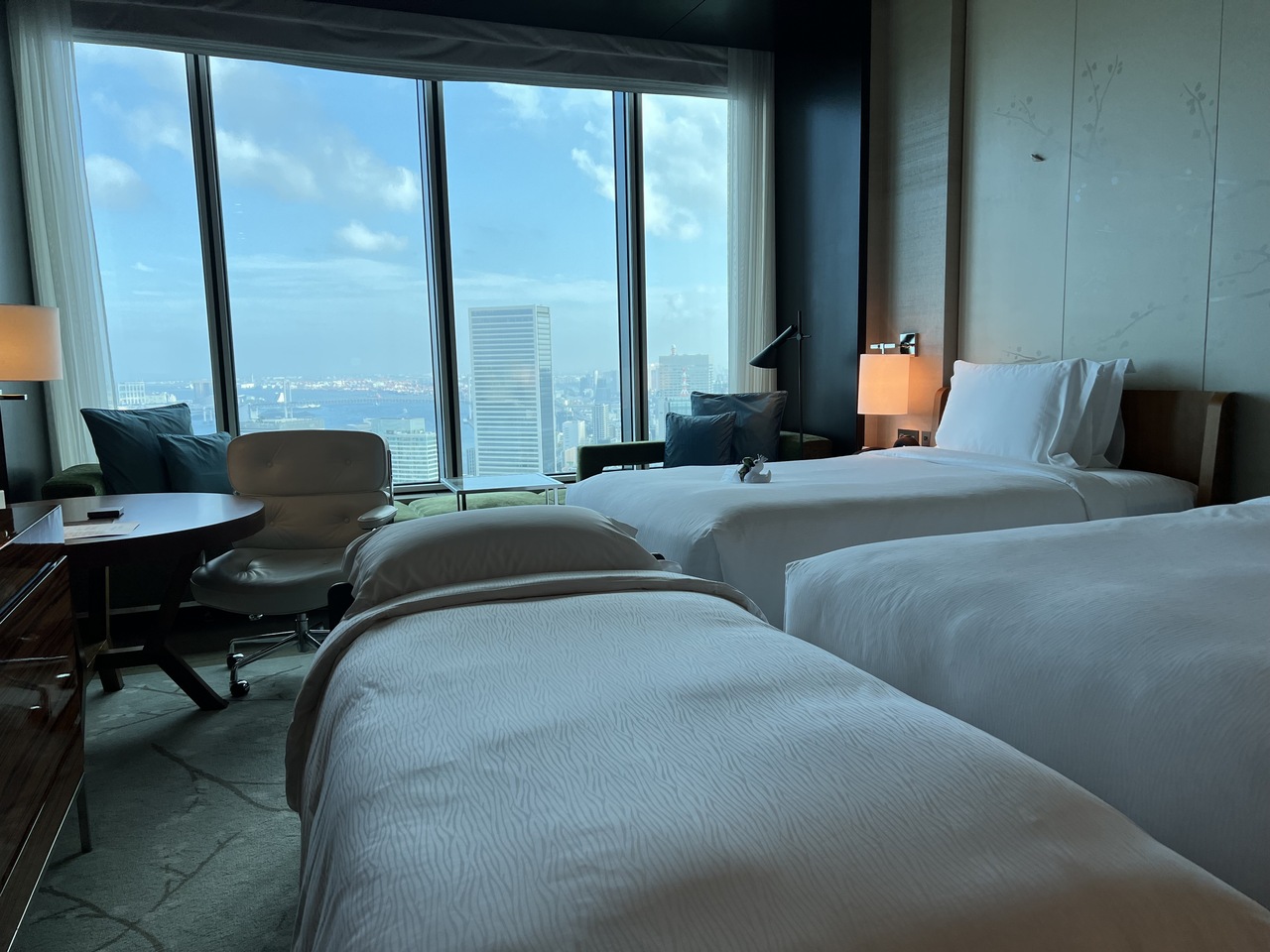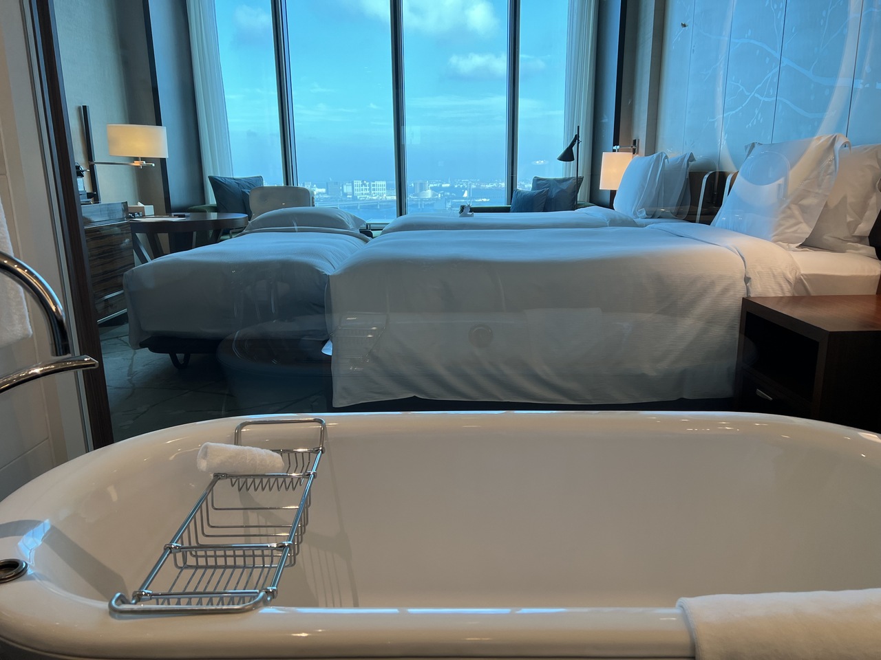 連休中日に宿泊。この日は満室ということで15時15分位に到着したらフロントは大行列。チェックインに30分はかかりました。エグゼクティブラウンジアクセスの部屋を予約しましたが、ラウンジも混んでいました。ベイビュールームは景色がいいです。