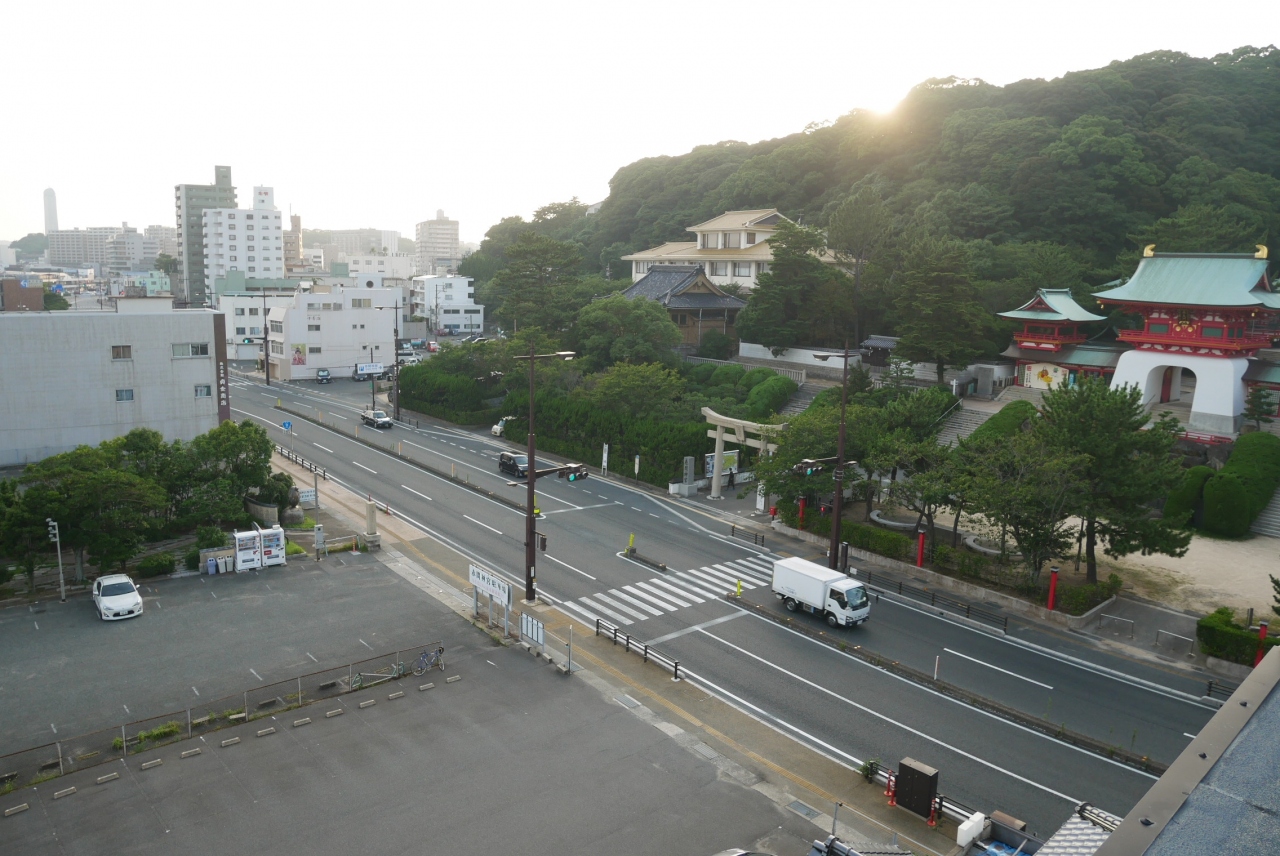 下関の関門海峡ぞい海の真ん前、赤間神宮前の