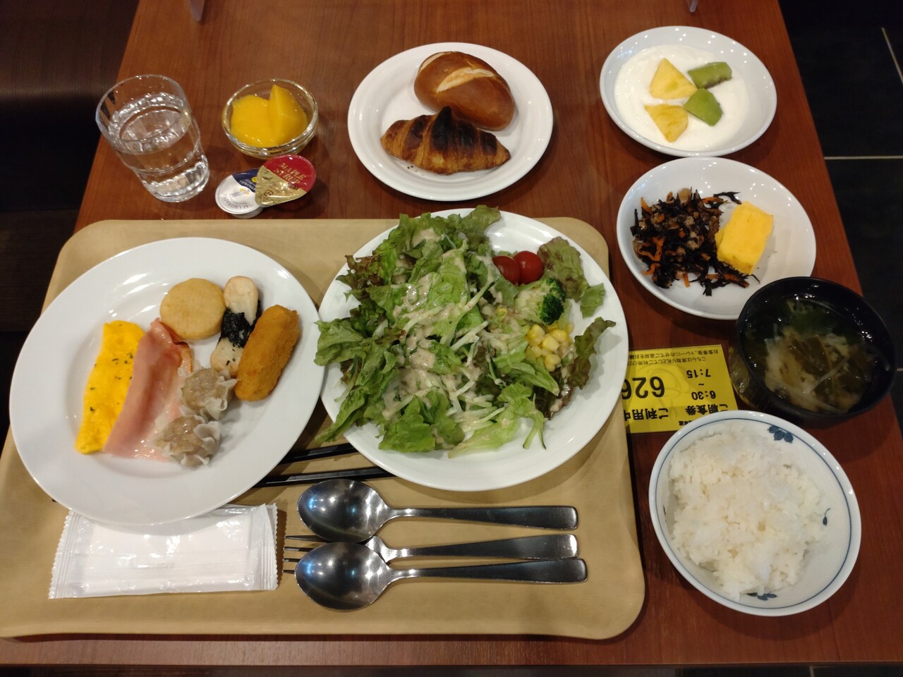 ロビーには無料の珈琲、朝食はビッフェスタイルで非常に美味しかったですね。特にパンは焼くことができて美味しかったですね。また大浴場があるので、夜と朝に入浴できて嬉しかったですね。