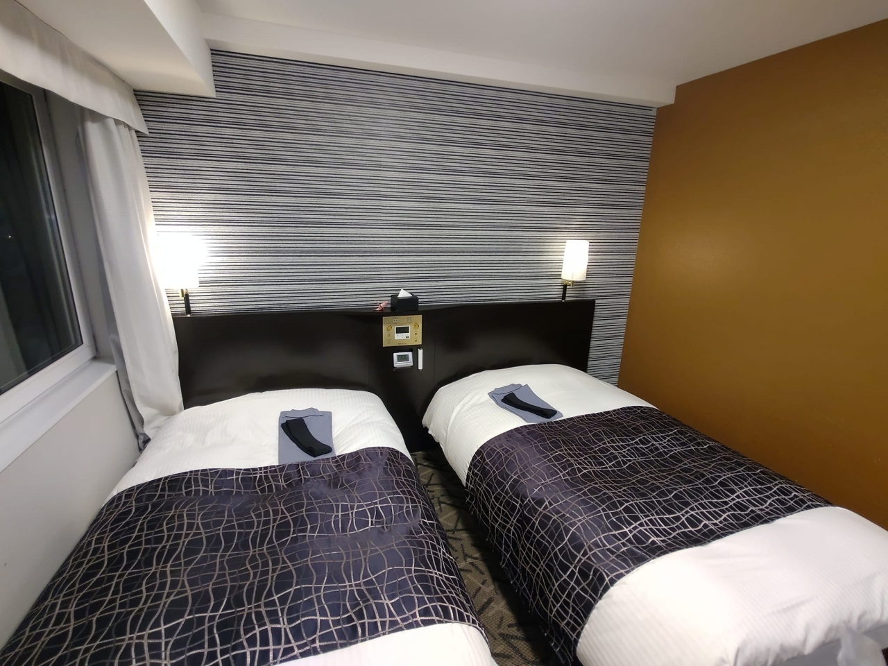 人生最狭のツインルームでしたが、アパが建てたハードでないので耐震偽装の不安がないのが良かったです。
