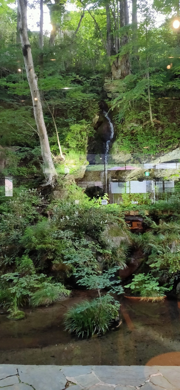 ラウンジからは 目の前に小規模な滝が見えます。 これは癒されそう?
