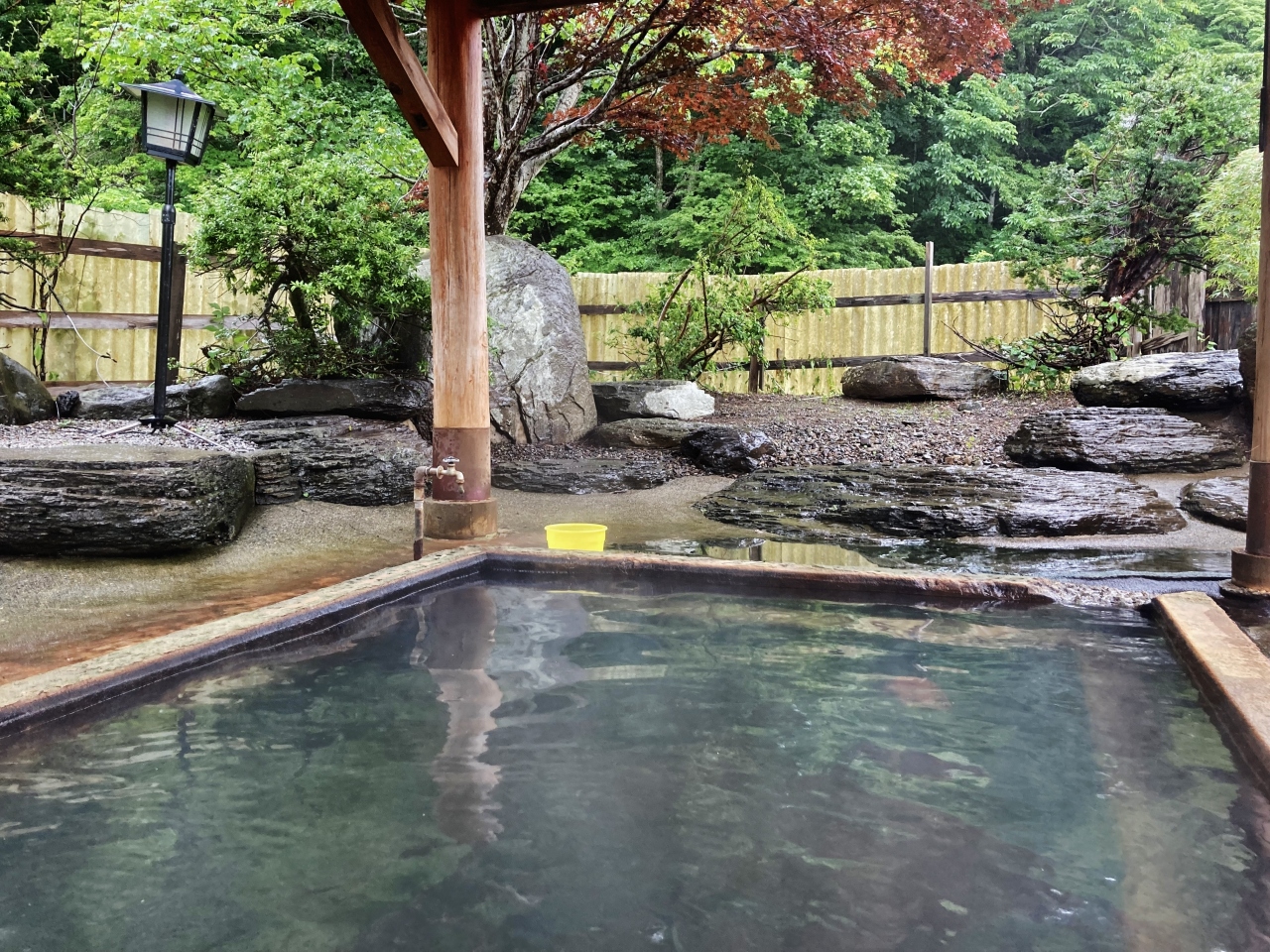 なお、下の湯の露天風呂、下の湯の内風呂、上の湯の内風呂間の移動には、いちいち脱衣場で着替える必要があり、宿泊者は浴衣があるので不自由ないが、こういう時は日帰り入浴は不自由する。
