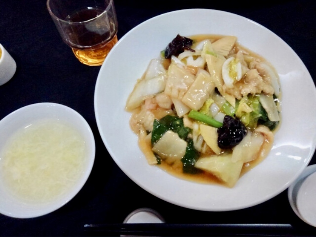 遅いお昼だったので、夜は、オーダーストップ前ギリギリに、五目あんかけ焼きそば(1200円)を単品オーダー。さっぱり薄味の、飽きない味でまぁまぁの味。そして朝食は、朝食バイキング。素泊まり料金と、朝食付き料金の差額が、650円だから、朝食付きの方が得かもしれません。